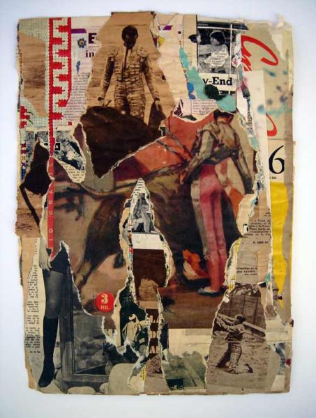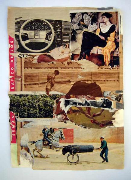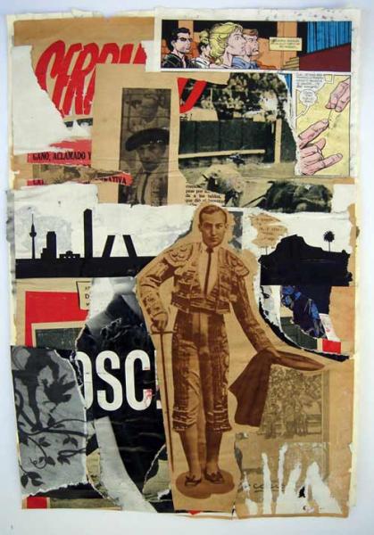 Mi colaboración para la revista Toros comienza al utilizar trozos de revistas, periódicos y afiches publicitarios de otras épocas, con los que compongo una nueva realidad a partir de una técnica opuesta al collage. En lugar de construir una imagen a partir de la suma de otras imágenes o partes de ellas, creo cada imagen cortando, eliminando, rasgando, y arañando partes de la imagen original. Se trata de rescatar en forma de hallazgo, los residuos de la sociedad y el mundo taurino, y resitúarlos de nuevo en un contexto artístico.
